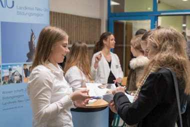 Die Inge-Aicher-Scholl-Realschule Neu-Ulm-Pfuhl veranstaltete dieses Jahr bereits zum 20. Mal den Berufsfindungstag, bei dem sich rund 50 Firmen und Ausbildungseinrichtungen in der Aula, den Fluren sowie den Computer- und Unterrichtsräumen für die Besucher präsentierten. Prominente Gäste unterstützten die seit Jahren erfolgreiche Veranstaltung.