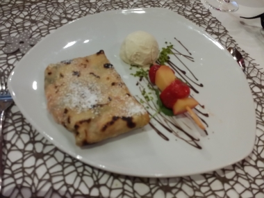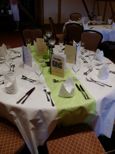 In der Schule lernten wir das Einschenken von Getränken, wie wir richtig zu den Tischen laufen, wie man Servietten bricht (= faltet) und den Tisch decken.