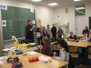 Hierbei wurde hervorgehoben, dass es besonders im Herbst und Winter wichtig ist, sehen und gesehen zu werden. Verdeutlicht wurde diese Tatsache zunächst anhand von heller und dunkler Kleidung, Reflektoren, Fahrradlicht und einer Postkarte, die jede Schülerin und jeder Schüler erhielt, die das Thema aufgriff.